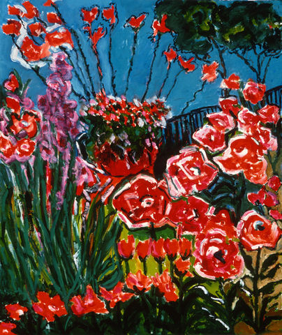 “I am deeply attached to the lush, sundrenched Italian countryside. As a painter this radiant atmosphere suits me perfectly, for I revel in the sensations and richness of color. I transfer these sensations to my canvases to create dynamic, color-laden images of the world around me. Each brushstroke of applied color lends an intrinsic excitement to my work, building to a crescendo of powerful vibrancy. My compositions are based upon a solidarity of form and mass that allows all parts to relate to the unified whole, and the robust and powerful effect of pure color imbues these sculptural forms with a potent, flowing life force. This reflects my personal ‘joie de vivre’! My painting is a creative testimony to the sources of joy that lie within me and are expressed creatively. I believe in combining reality with a deeply personal and expressive journey into sensation through the use of joyful, exhuberant color. I feel this helps my work achieve a powerful earthiness and gives it its universally uplifting appeal.”